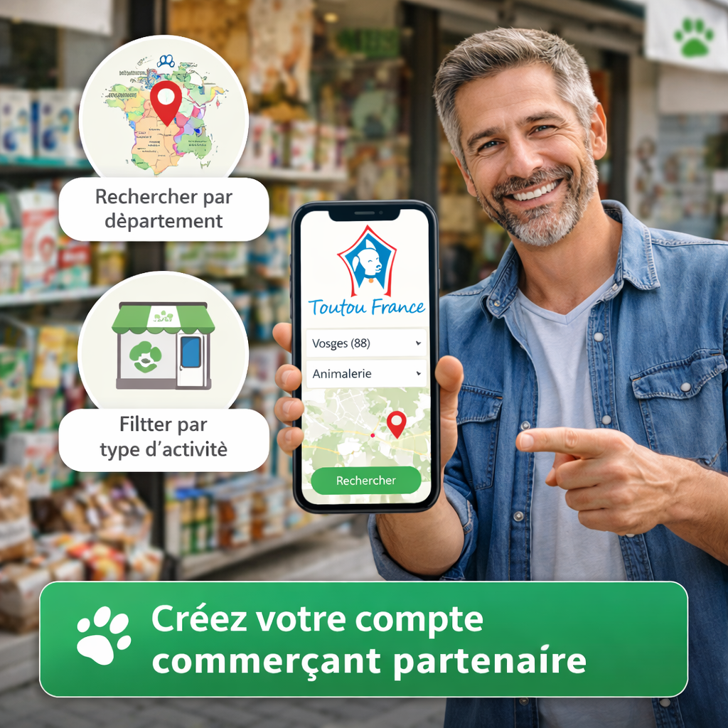 Toutou France est une plateforme solidaire dédiée aux animaux, pensée pour valoriser les commerces de proximité et leur offrir un nouveau levier de développement.