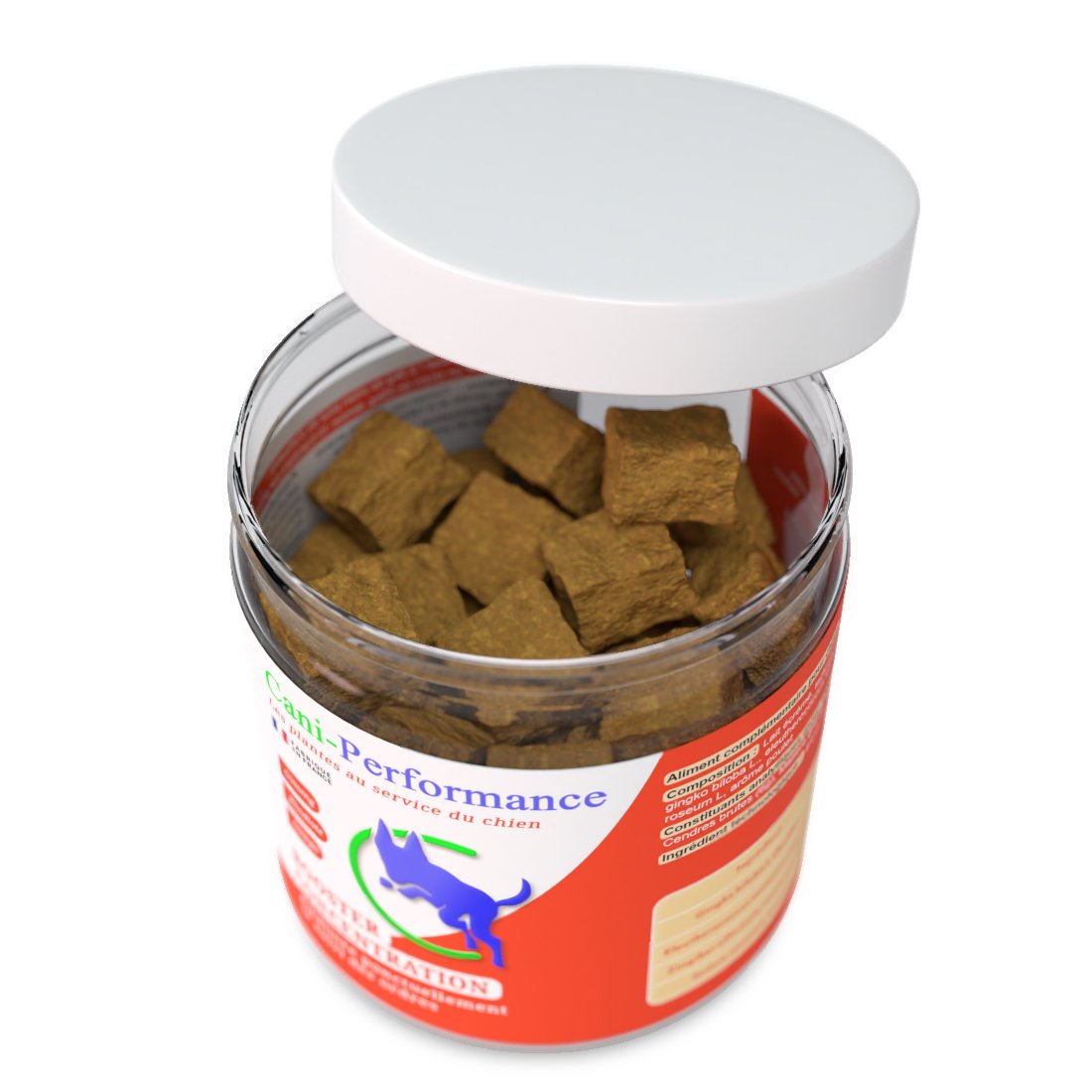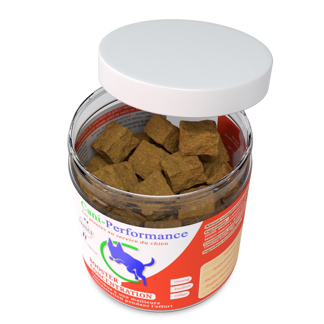 Le Booster Concentration est un complément alimentaire sous forme de biscuit appétent, spécialement formulé pour aider les chiens sportifs, de travail ou de compétition à rester concentrés, attentifs et réactifs pendant l’effort. Sa formule associe plusieurs plantes reconnues pour leurs effets sur la vigilance et la performance cognitive :