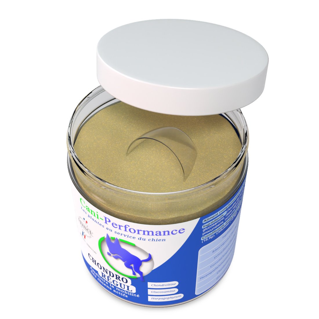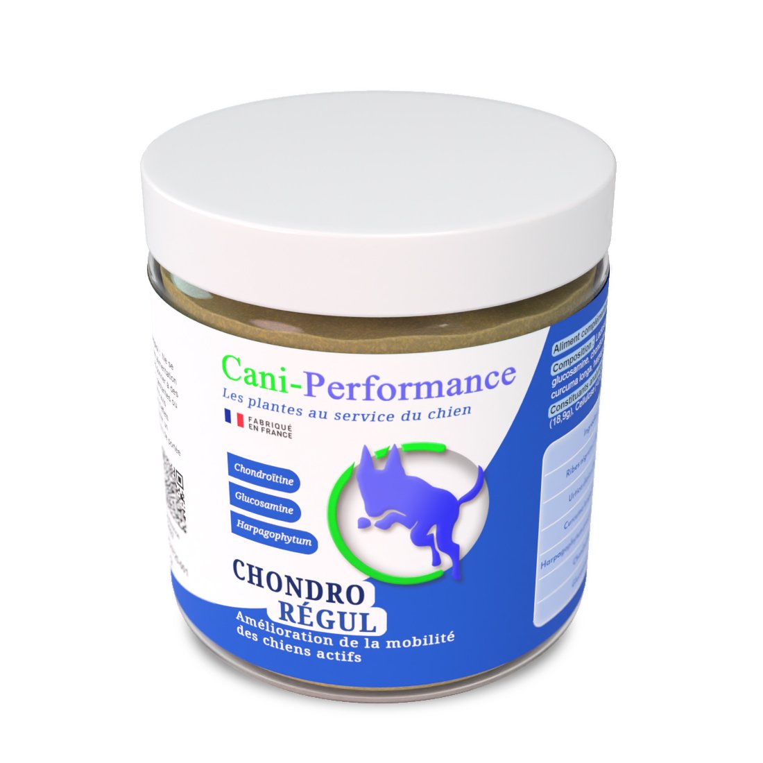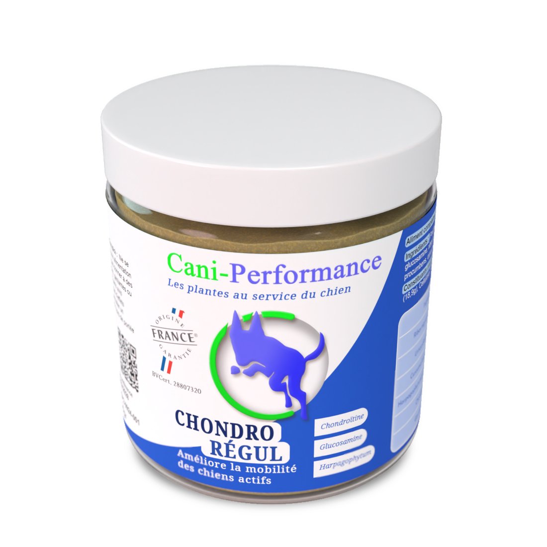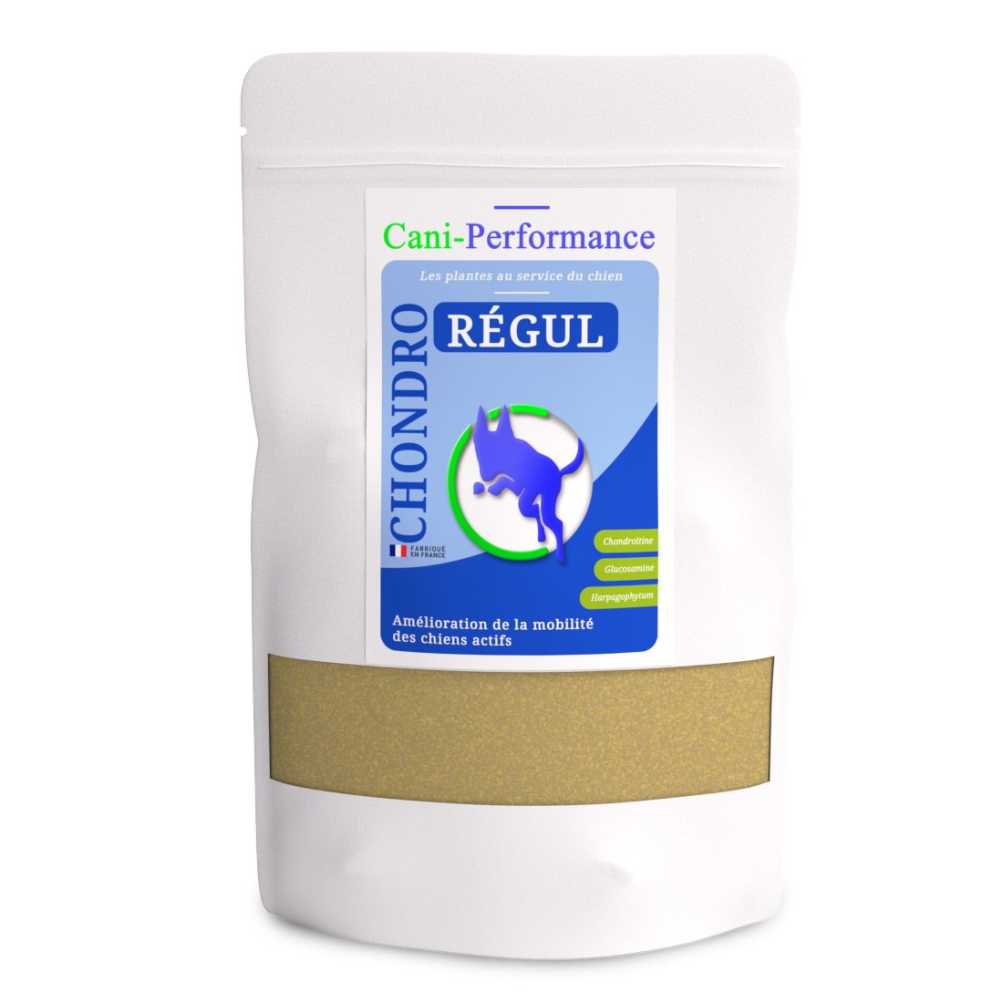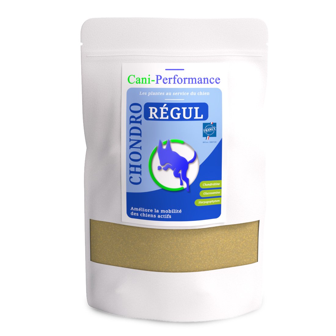Le Chondro’Regul est un complément alimentaire en poudre, formulé pour soutenir la mobilité et le confort des chiens sportifs, de travail ou seniors. Sa formule associe des actifs naturels reconnus pour leur action ciblée sur la souplesse, la récupération et la vitalité du mouvement :