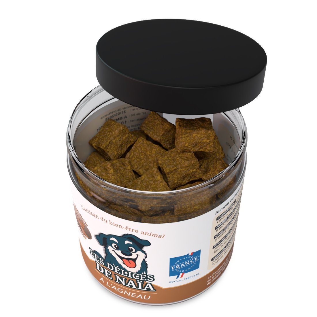 Offrez à votre chien une friandise à la fois gourmande et nutritive avec Les Délices de Naïa à l’agneau, des bouchées sans céréales, élaborées en France à partir de foie d’agneau, un ingrédient naturellement riche en nutriments.