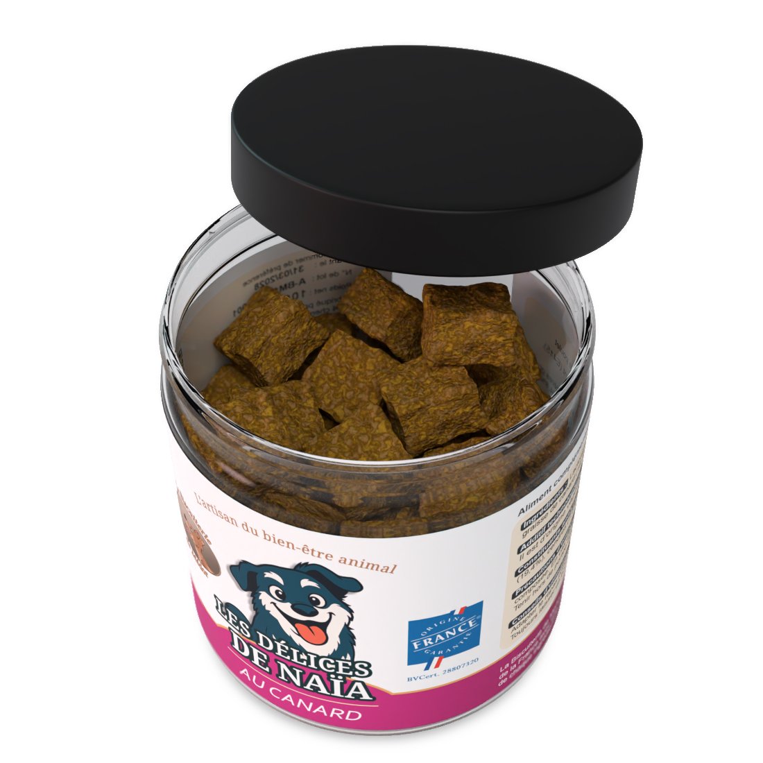 Faites plaisir à votre chien avec Les Délices de Naïa au canard, de savoureuses friandises sans céréales, fabriquées en France avec des ingrédients sélectionnés pour leur qualité et leur naturalité.