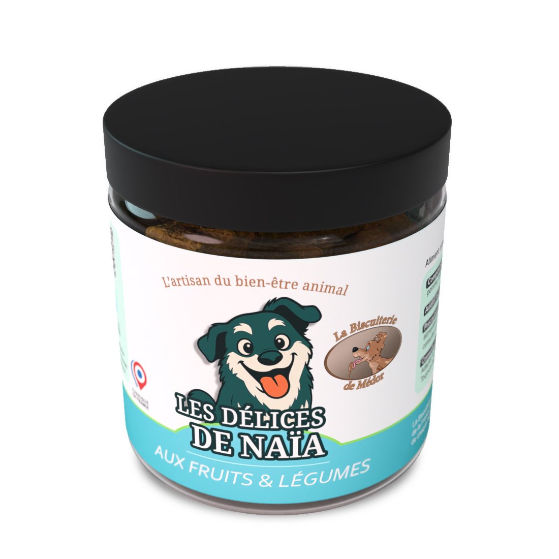 Cette recette, fabriquée en France sans aucun ingrédient d’origine animale, convient aussi bien aux chiens gourmands qu’à ceux suivant un régime spécifique, comme les chiens sensibles ou en transition vers une alimentation plus végétale.