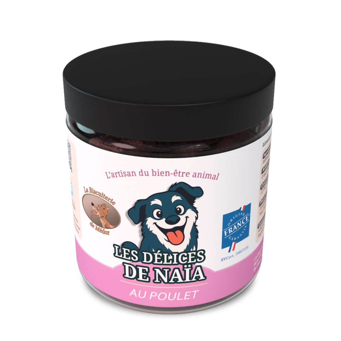 Offrez une pause gourmande plus légère à votre compagnon avec Les Délices de Naïa au poulet, des friandises sans céréales, élaborées à partir de foie de poulet français soigneusement sélectionné.