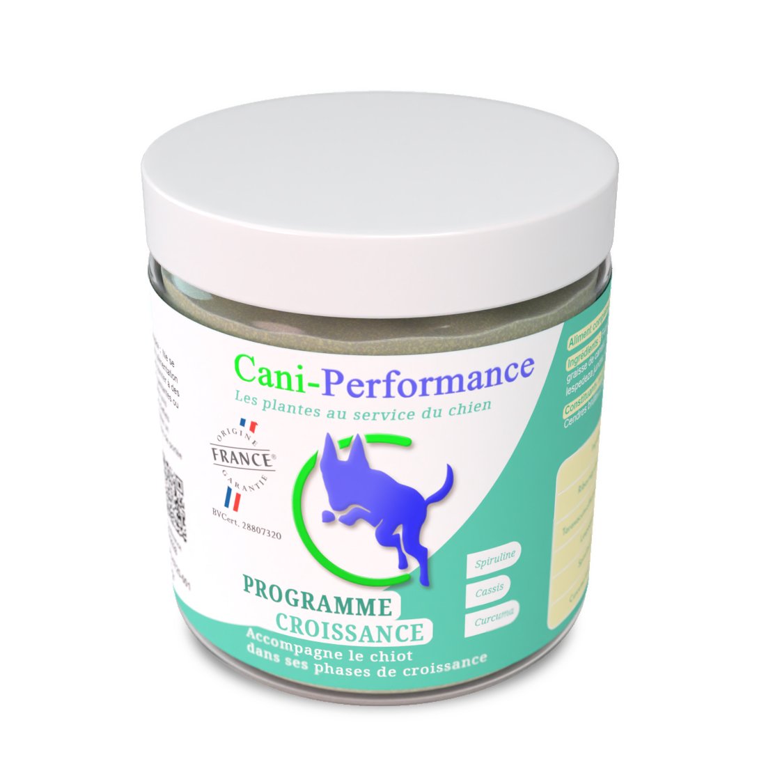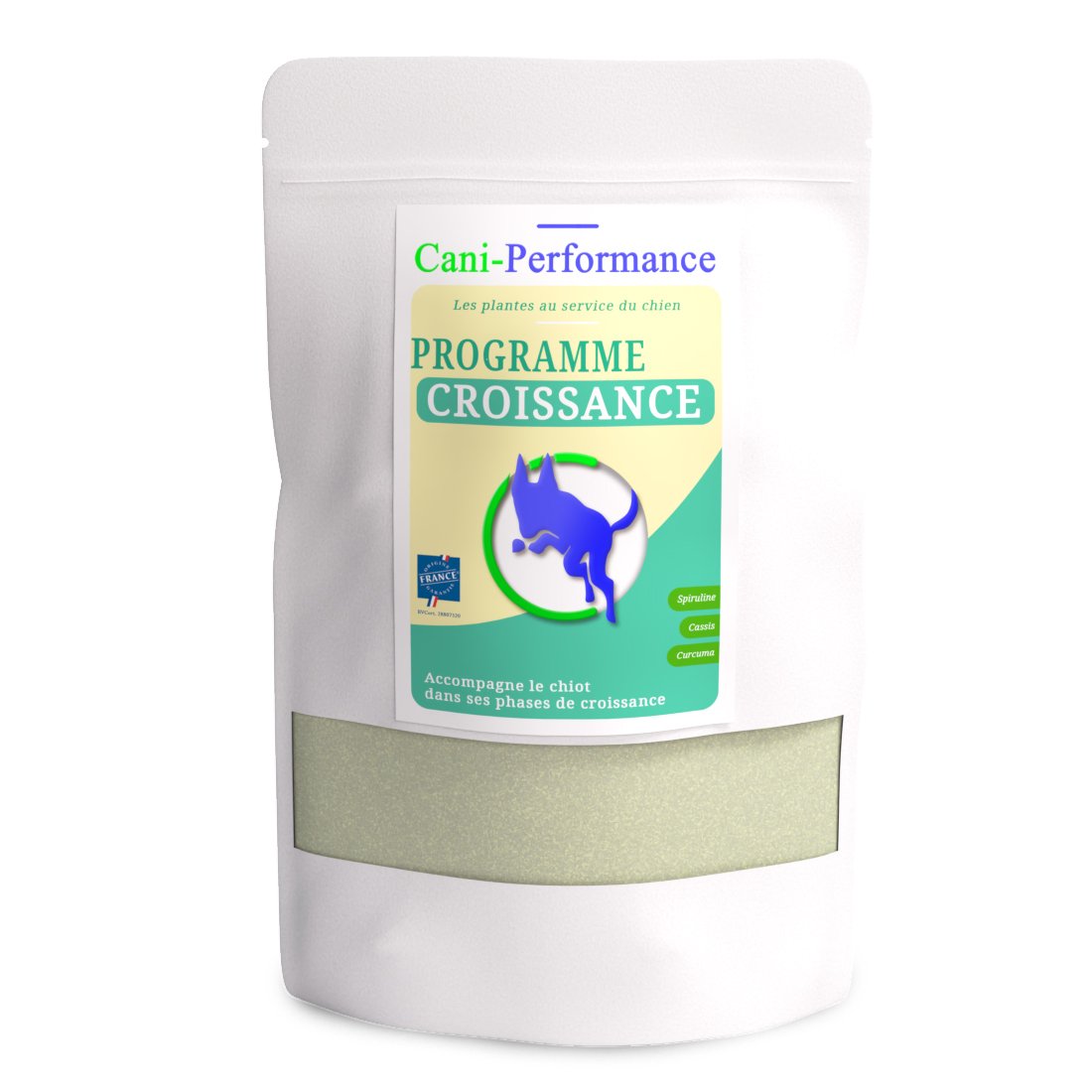 Le Programme Croissance est un complément alimentaire en poudre, conçu pour accompagner les chiots et jeunes chiens tout au long de leur développement. Il soutient la vitalité, la croissance harmonieuse et le bon équilibre du corps durant cette période essentielle. Sa formule associe des ingrédients naturels rigoureusement sélectionnés :