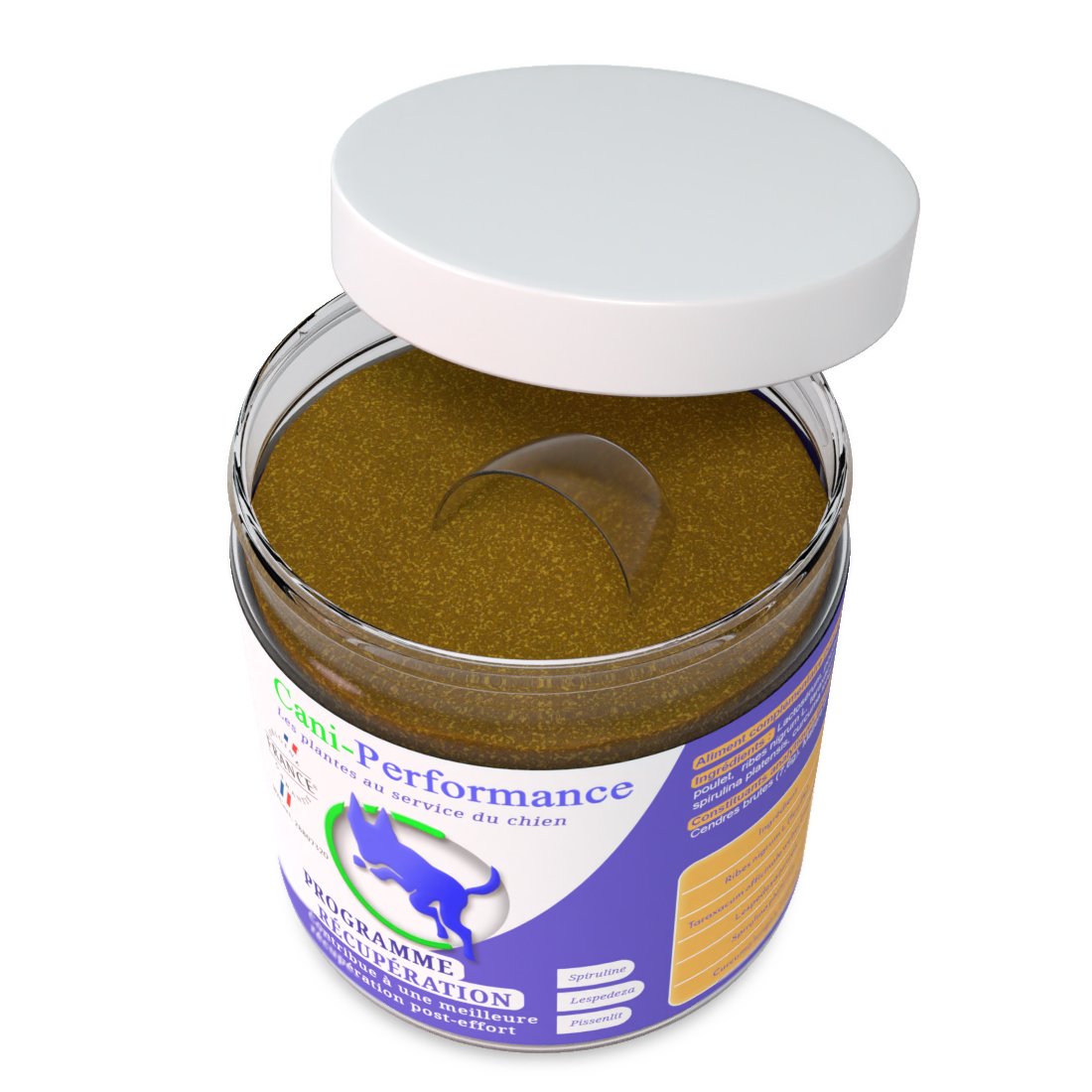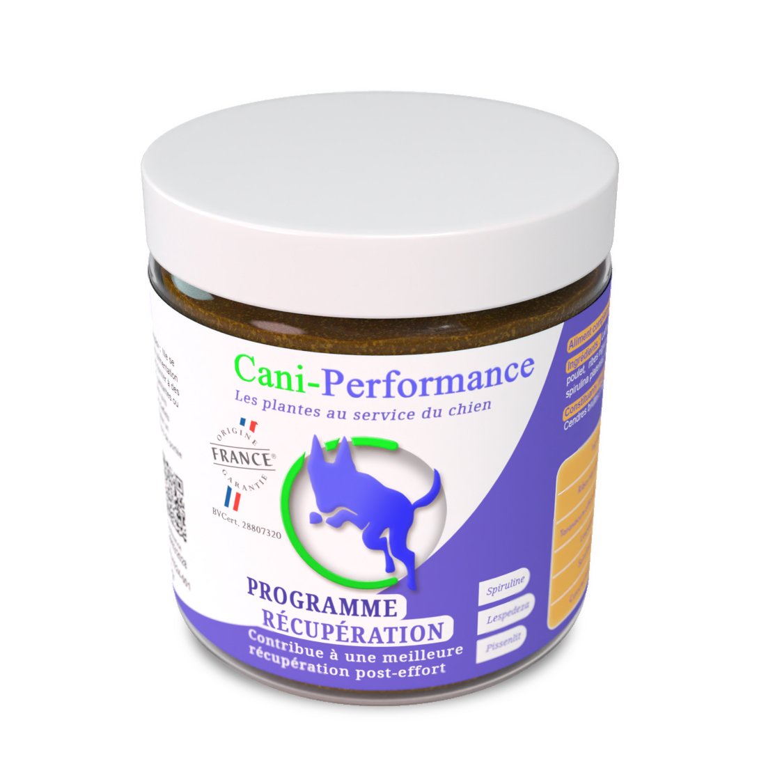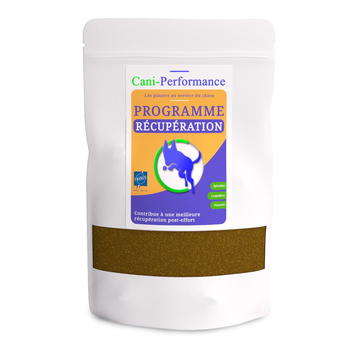 Le Programme Récupération est un complément alimentaire en poudre, conçu pour accompagner les chiens sportifs, de travail ou très actifs après une période d’effort. Il aide à retrouver énergie, bien-être et équilibre, tout en soutenant le retour à un rythme normal. Sa formule associe des ingrédients naturels soigneusement sélectionnés :